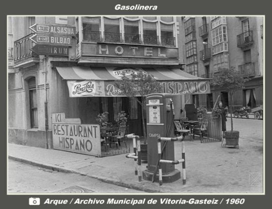 La vieja gasolinera de la callle Ortiz de Zárate junto al restaurante Hispano en 1960 / Arque / Archivo Municipal de Vitoria