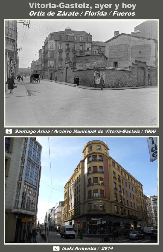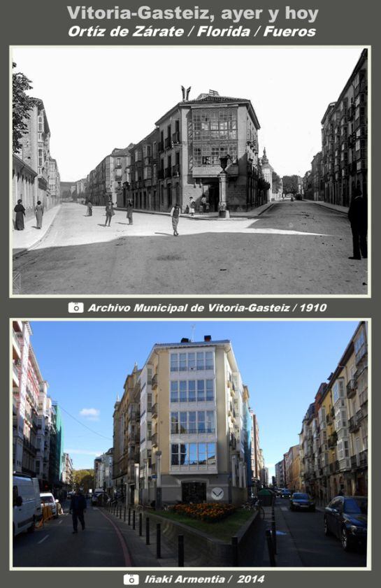 Hoy en esta sección veremos la transformación sufrida con el paso del tiempo, en la manzana de forma triangular que forman las calles Ortiz de Zarate, Florida y Fueros.