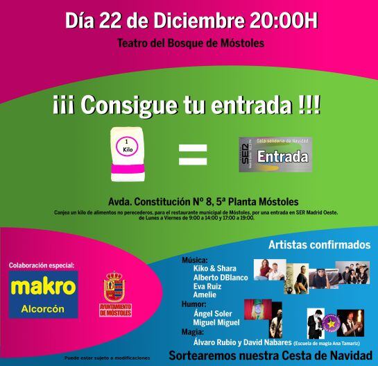 Cartel de la gala solidaria organizada por SER MADRID OESTE / CADENA SER