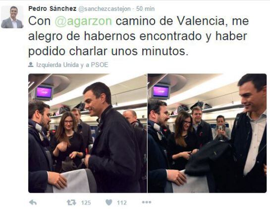 Sánchez y Garzón coinciden en el AVE de camino a Valencia