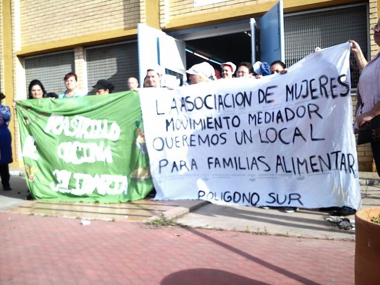 Movimiento Mediador es una ONG impulsada por un grupo de mujeres del Polígono Sur, donde más de un centenar de personas, en su mayoría mujeres sin ingresos y con menores a su cargo, aprenden a cocinar un menú saludable y luego se llevan a casa la comida, para que su familia pueda comer. La cocina solidaria está en el Centro Cívico El Esqueleto y la ONG lleva 8 años reclamando otra sede donde poder atender mejor a estos vecinos del barrio porque el centro cívico sólo tiene espacio para ellas tres días a la semana. De momento, nadie les ha dado respuesta. Por eso, este miércoles, han decidido ocupar un local municipal que se encuentra vacío, cerca del lugar desde donde ahora trabajan.