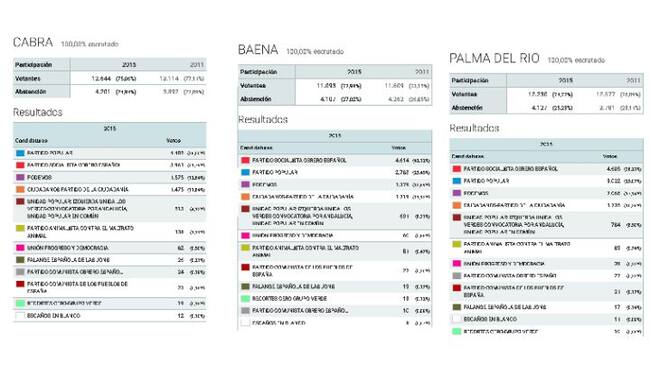 Partido Popular y Partido socialista han perdido votos en los municipios, pero sobre todo el primero. El PSOE ha ganado en gran parte de los pueblos. Así ha pasado en Baena, Montilla, Palma del Río, La Carlota o Pozoblanco.