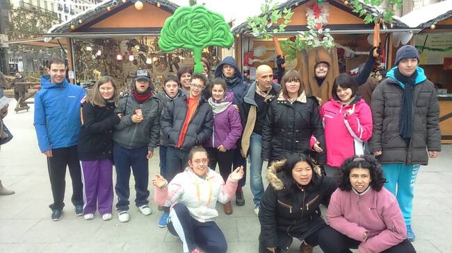 Usuarios de Atades junto a la caseta que la organización tiene en la plaza del Pilar / Juanjo Hernández