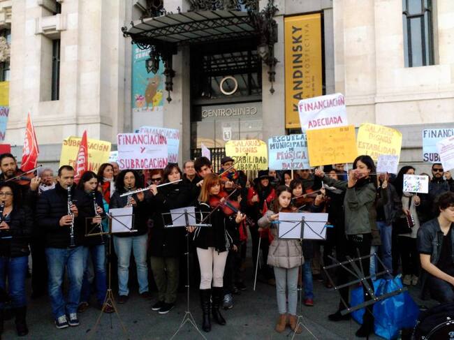 Concentración de los profesores de música frente al ayuntamiento de Madrid