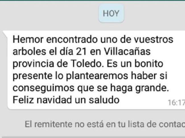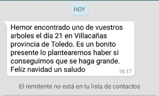 Al día siguiente, en menos de 24 horas, fue encontrado el primer globol en Sayatón, en Guadalajara. Lo vieron Manuel Palomeda y su hermano cuando paseaban por el olivar de sus padres. Del globo colgaba la semilla de un árbol llamado ceibo y un mensaje para sus cuidados. Manuel asegura que lo van a plantar.