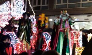 Ya por la tarde tuvo lugar la gran cabalgata, bajo una lluvia intensa y un frío considerable que mermaron en cierta medida la presencia de niños y mayores. El desfile recuperó un trayecto realizado hace tres años. Pasó por Viesques, El Coto y La Arena para finalizar en la Plaza Mayor, donde Melchor, Gaspar y Baltasar volvieron a saludar a todos los niños gijoneses.