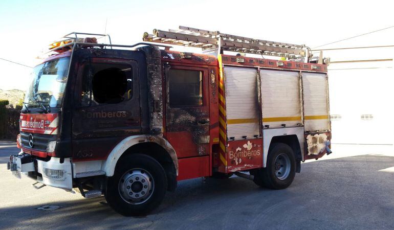 Las llamas casi engullen un camión de bomberos en Villena