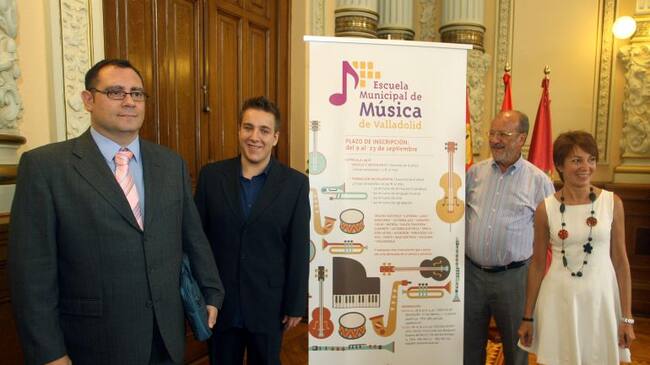 Javier Alonso Zarzoso , Javier León de la Riva, la concejala Domi Fernández, y Rafael Porta en la presentación curso 2013-2014 de la Escuela Municipal de Música / Agencia Ical