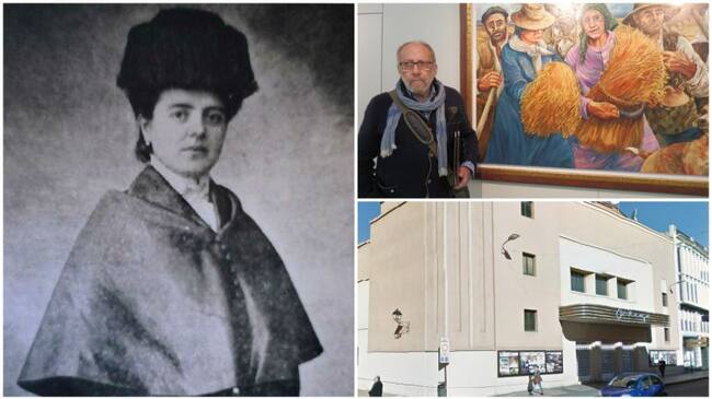 Trinidad Arroyo, Fernando Escobar y la fachada del Teatro Ortega fundado por Osmundo Margareto / Radio Palencia