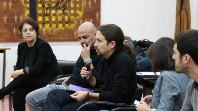 Gloria Elizo (izquierda) junto a José García Molina (centro) y Pablo Iglesias (derecha) / Podemos Castilla-La Mancha