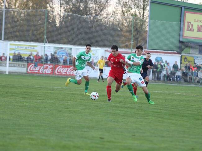 Javier Orodea se lleva el balón ante los defensas del At. Astorga / Cultural y Deportiva Leonesa