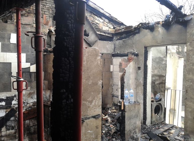 Las brasas han quemado el fondo del patio de luces, una superficie de unos 20 metros cuadrados, que se ha hundido cayendo sobre los locales de la Sociedad Cultural Deportiva y Recreativa Irrintzi, que ha sufrido importantes daños y que de momento ha suspendido todas sus actividades.