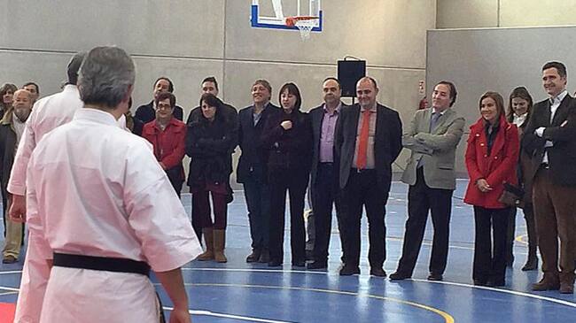 El alcalde de Buitrago, Ángel Martínez y el consejero de Administración Local, Jaime González Taboada han inaugurado el nuevo polideportivo / Comunidad de Madrid