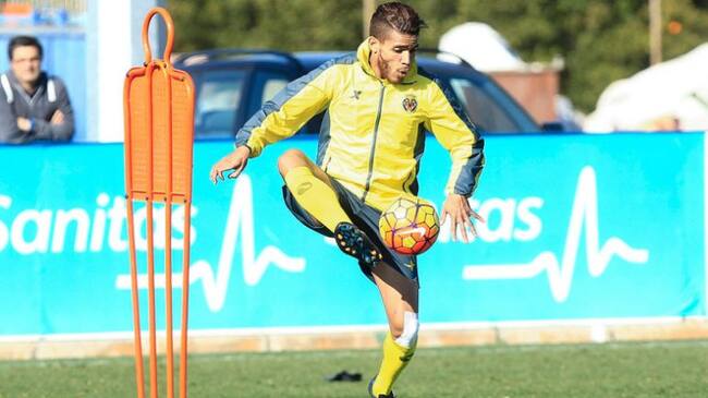 Jonathan Dos Santos controla un balón en la sesión de entrenamiento(Villarreal cf)