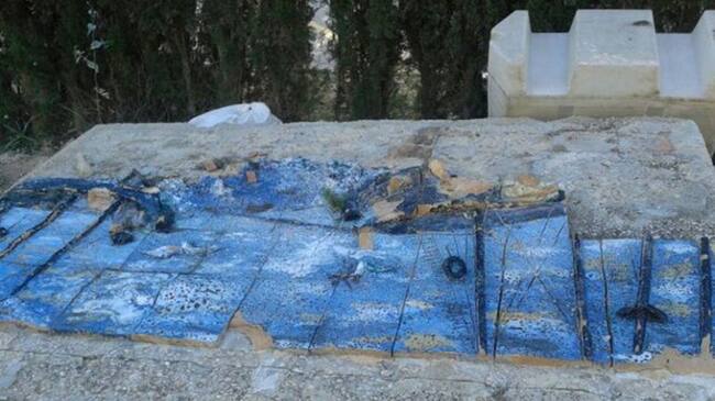 Un mural del artista Pedro Delso, valorado en casi 200.000 euros, que hace años se encontraba en la Plaza de España, se encuentra ahora abandonado a la intemperie en el cementerio de Benidorm y con graves desperfectos.