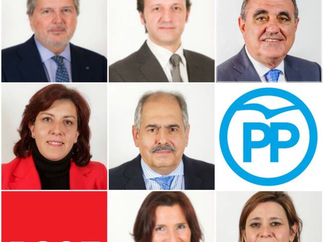 De Izquierda a derecha y de arriba a abajo, Íñigo Méndez de Vigo, Miguel Ángel Paniagua, Antonio Rubio Mielgo, Nuria Simón y Manuel Betegón del PP y María Luz Martínez Seijo y Rosa Aldea del PSOE / Radio Palencia