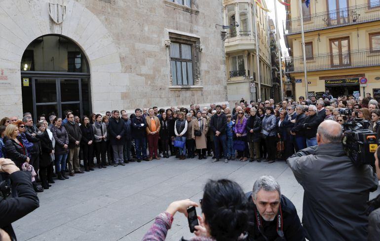 Otros tres minutos de silencio frente al Palau de la Generalitat para condenar la violencia machista. Y ya van tres veces en lo que llevamos de año. En esta ocasión, miembros del Consell, del Ayuntamiento de Valencia y de todas las fuerzas políticas se han congregado para mostrar su repulsa hacia el asesinato de una mujer de 71 años presuntamente a manos de su marido, de 74.