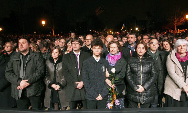 Asseguts al costat de Forcadell en la primera fila, la seva filla Laia, Max -nét de Casals- i Isabel -germana de l'exdirigent- han encapçalat la representació familiar, que ha arribat a l'acte baixant l'escalinata principal del Parlament al costat de la presidenta de la Cambra i el president de la Generalitat.