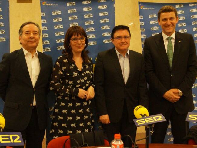 De izquierda a derecha: Ángel Calamardo, director regional de SER Castilla-La Mancha; Juncal Roldan, conductora de Hoy por Hoy Castilla-La Mancha; Teo García, concejal de urbanismo de Toledo y Víctor Manuel Martín, director general de Caja Rural Castilla-
