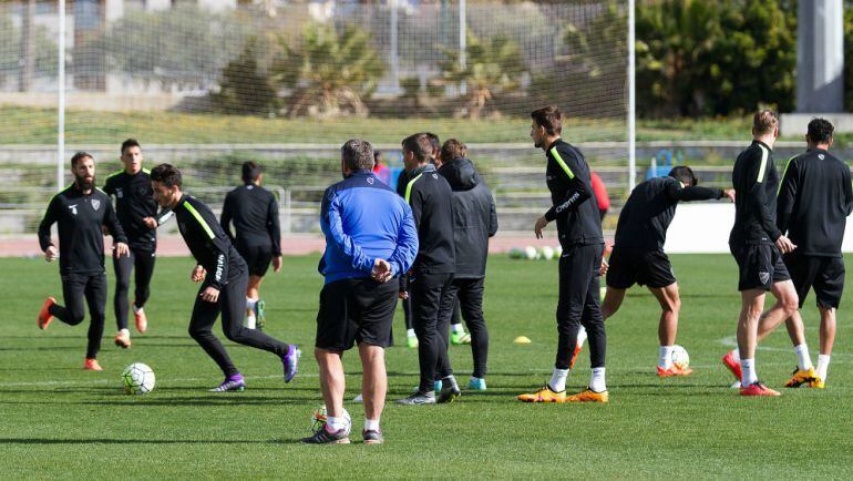 El Málaga completó hoy su tercera sesión de la semana sin apenas novedades, con el balón como principal protagonista, en el estadio de atletismo ‘Ciudad de Málaga’.