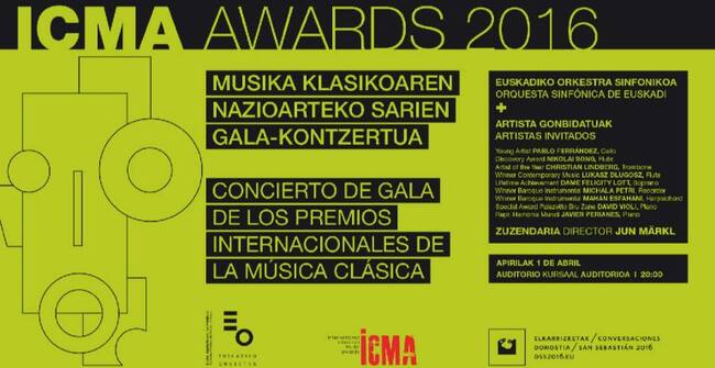 Los premiados con los International Classical Music Awards (ICMA) ofrecerán el mismo día 1 de abril a las 20:00 horas un concierto junto a la Orquesta Sinfónica de Euskadi en el auditorio del Kursaal de San Sebastián tras recoger sus galardones.