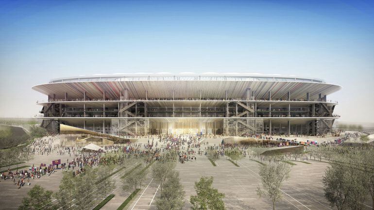 A més d´aspectes coneguts com la capacitat (105.000 espectadors) i que la grada quedarà protegida de la pluja, també ha transcendit que no tindrà façana i que en canvi quedarà obert amb plataformes en forma d´anella. Segons el directiu responsable, Jordi Moix, “una proposta oberta , elegant, serena, intemporal, mediterrània, i democràtica.”