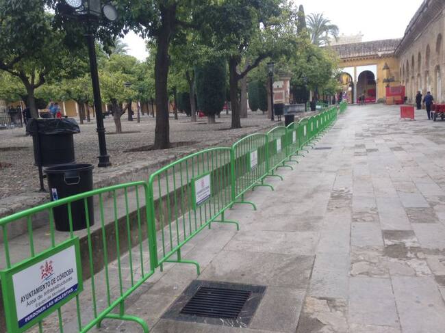 Por primera vez, todos los cortejos procesionales visitarán el primer templo de la Diócesis, donde ya están colocadas las vallas a lo largo del recorrido por el patio de los Naranjos