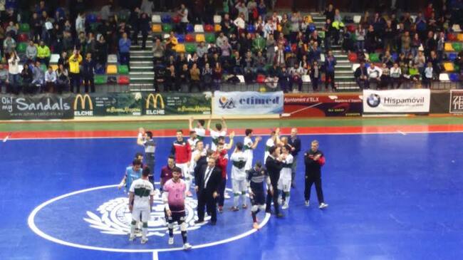 Los jugadores del Elche C.F. Sala agradecen el apoyo de su afición / Pepe Morago