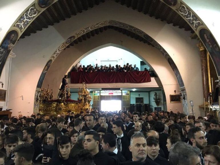 Ante el riesgo de lluvia, según AEMET de un cien por cien hasta las seis dela tarde, la hermandad de Santa Genoveva regresa a su templo