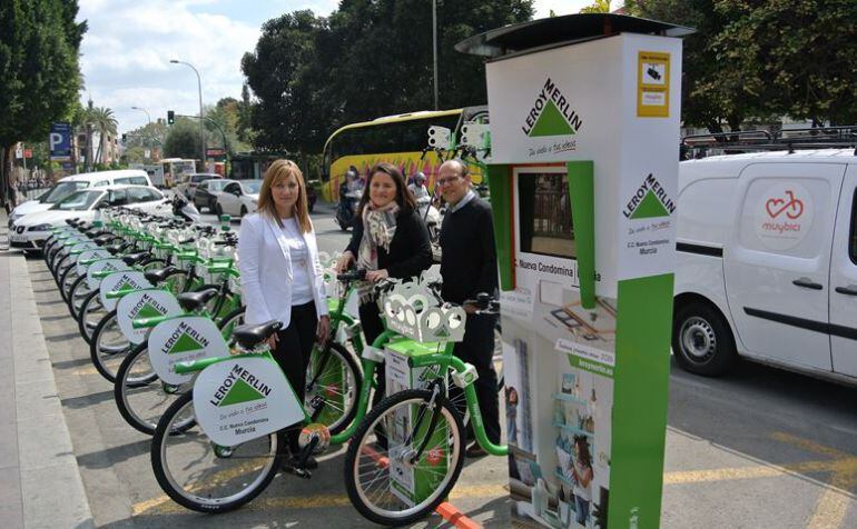 El sistema de alquiler de bicicleta pública MUyBICI continúa mejorando su servicio al usuario. Desde la pasada semana, los murcianos disponen de 150 nuevas bicicletas de las mismas características que el resto pero con la peculiaridad de que son verdes, ya que están patrocinadas por los establecimientos de bricolaje Leroy Merlin.
