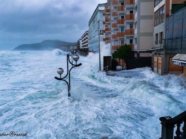 El fuerte oleaje 'engulle' el malecón de Zarautz.