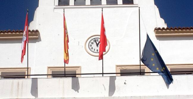 La bandera de la Unión Europea ondea media asta en la fachada del ayuntamiento de San Sebastián de los Reyes / Ayuntamiento de San Sebastián de los Reyes