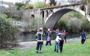 Una inspección ocular desde lo alto del puente del ferrocarril permitió a los bomberos visualizar el cuerpo de A.C.S en el fondo del agua, a pocos metros de donde se produjo ayer el suceso. Los propios bomberos, equipados con trajes de neopreno, pudieron llevar hasta la orilla el cuerpo semidesnudo del muchacho.