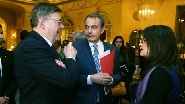 Ximo Puis, José Luis Rodríguez Zapatero y Mónica Oltra ayer en Madrid / Cadena SER