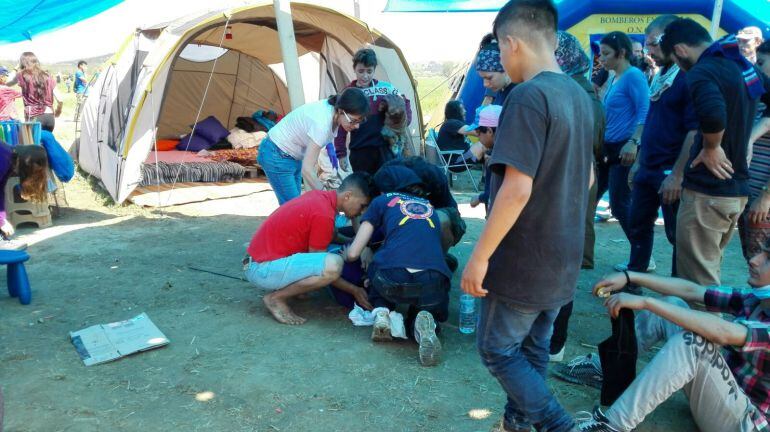Un grupo de jóvenes ilicitanos y de otras poblaciones cercanas se fueron el viernes al campamento de refugiados de Idomeni a ayudar como voluntarios. Tras un par de dias para aclimatarse vivieron ayer la revuelta que se produjo y la represión de la policia macedonia. Estuvieron intentando ayudar a los refugiados que llegaban de la trifulca con problemas en los ojos por los gases lacrimógenos o con contusiones por las caidas.