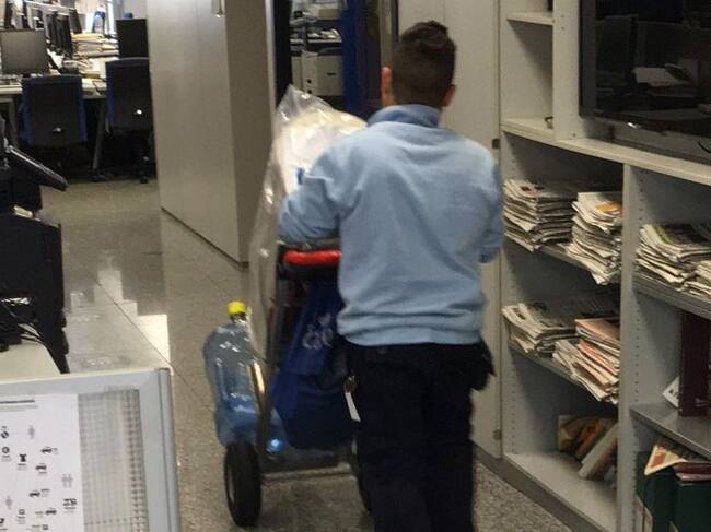 Empleats d'Eden retiren les garrafes d'aigua contaminada / Sergi Caballero (CADENA SER)