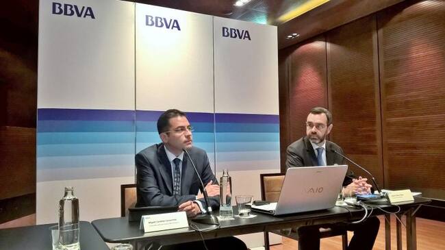 Esta entidad bancaria estima que la economía murciana consolidará su recuperación con crecimientos del 2'7 % para este año y el 2'8 % para el que viene, tres y cuatro décimas por encima de su media histórica, lo que permitirá crear un importante número de puestos de trabajo y la reducción de la tasa de paro. Miguel Cardoso es el economista jefe para España de BBVA Research.