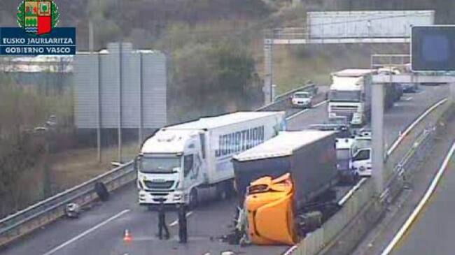 Abierta la AP-8 en Amorebieta tras el choque de dos camiones