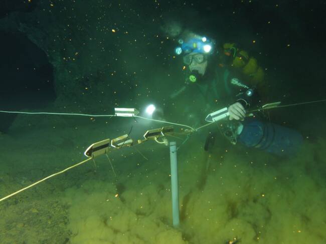 Expertos murcianos en espeleología subacuática recogen muestras de una forma de vida no conocida en la Cueva del Agua de Cartagena para investigadores internacionales.