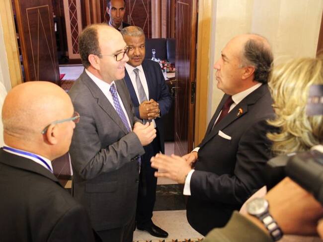 El presidente de la Cámara de Consejeros o Cámara Alta de Marruecos, Hakim Benchemmas, durante un encuentro con el alcalde de Algeciras, José Ignacio Landaluce en el hemiciclo parlamentario de Rabat ha expresado su deseo de organizar un seminario en Madrid ante parlamentarios españoles en los que tener la oportunidad de explicar la posición marroquí sobre ciertas cuestiones de interés internacional que preocupan a ambas naciones. Para ello ha pedido a Landaluce su intermediación ante la presidencia del Senado español así como la implicación de la Comisión de Exteriores que preside en Madrid.