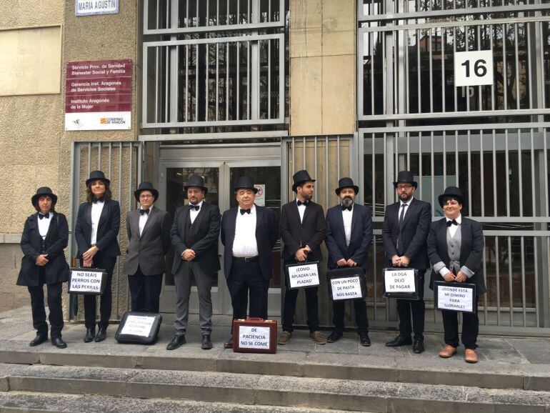 La Fundación de Discapacitados Intelectuales de las Fuentes se han concentrado como "cobradores del frac" frente al IASS, el Instituto de Servicios Sociales para pedir que la DGA les pague