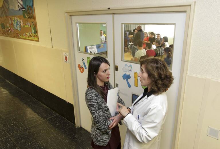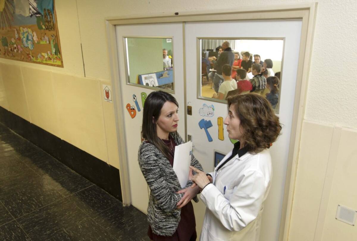 La concejala de Educación e Xustiza Social, Silvia Cameán, antes de su intervención, junto con la directora del Centro, Mariluz Barreiro