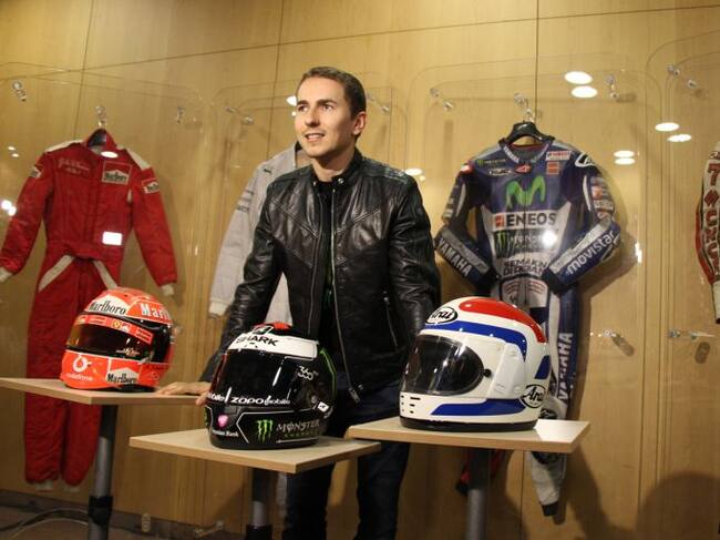 El campió del món de MotoGP, Jorge Lorenzo, amb algunes de les peces que s'exposaran en el seu museu 'World Champions Collection'. / B.N. (ANA)