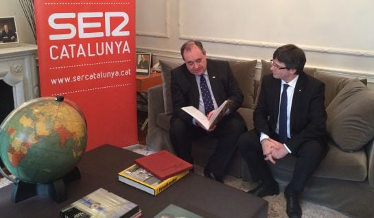 La cadena SER ha reunido en Londres al presidente de la Generalitat y el ex primer ministro escocés, que se ha mostrado partidario de buscar el acuerdo y el consenso. Puigdemont le ha replicado "¿Alguien piensa que porque el Estado español no se siente a negociar el pueblo de Cataluña se irá a casa?"