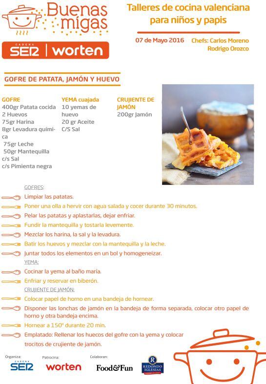 Gofre de patata, jamón y huevo. Receta propuesta por los chefs Carlos Moreno y Rodrigo Orozco para el octavo taller de Buenas Migas SER / Buenas Migas SER