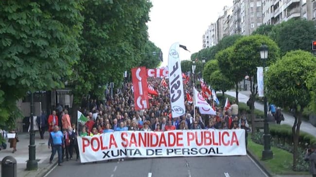 Varias decenas de miles de personas, aunque no tantas como en la manifestación del pasado mes de septiembre, han vuelto a reivindicar por el centro de Vigo una sanidad cien por cien pública mostrando así su rechazo al modelo privatizador, dicen del PP, escenificado en el hospital Álvaro Cunqueiro donde denuncian hay más intereses que los estrictamente sanitarios además de no cumplir con las necesidades que tiene este área sanitaria, la de mayor listas de espera en Galicia. Entre los que participado en esta marcha, representantes de todos los grupos políticos, salvo,claro del PP. Una multitudinaria manifestación que partió a las 20:00 horas de la Plaza de España para bajar por la gran Vía, Urzaiz, Cólon, Policarpor San y rematar en la Puerta del Sol.