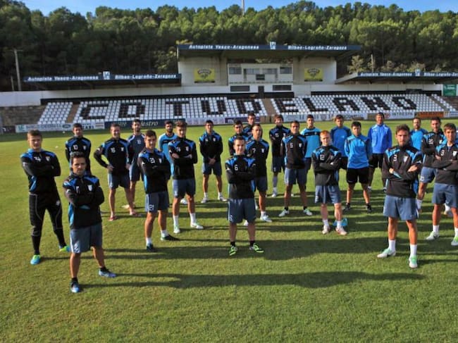 La plantilla del CD Tudelano posa en su estadio / CD Tudelano