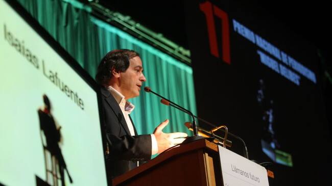 El periodista Isaías Lafuente, durante la entrega del premio de Periodismo Miguel Delibes / Miriam Chacón (Ical)