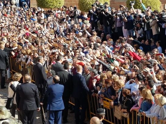 Con expectación y mucha ilusión miles de vecinos de la comarca de Infantes esperaban en la Plaza de la localidad la llegada de Sus Majestades los reyes de España