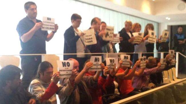 Imagen de la protesta de los trabajadores en el Pleno de Leganés / Leganemos
